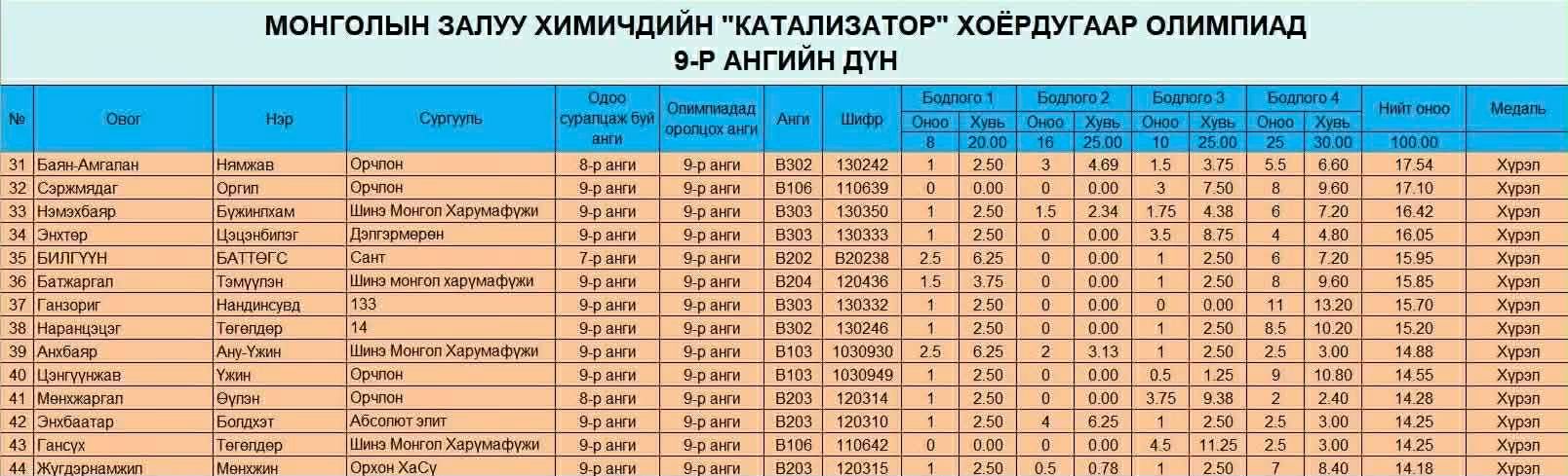 "Катализатор" II олимпиад - 9-р анги Э.Болдхэт хүрэл медаль